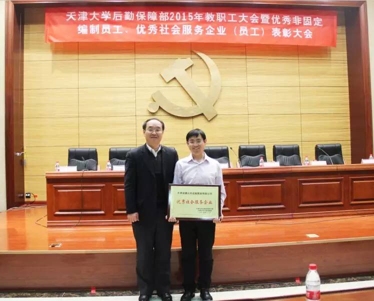 2015年12月30日,“天津大学后勤保障部2015年教职工代表大会暨优秀非固定编制员工、优秀社会服务企业(员工)表彰大会”在天津大学成功举办,今年会jinnianhui电力凭借强大的技术支持和优秀的电力服务质量,喜获“天津大学2015年优秀社会服务集体”荣誉称号。